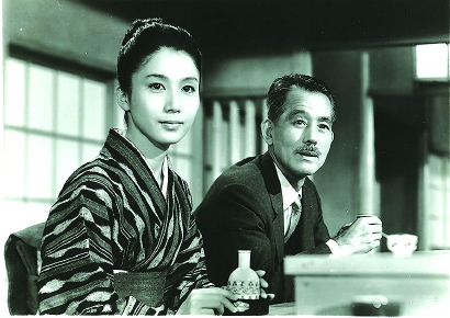 再看看1962年的收官作《秋刀鱼之味》。老父劝说女儿路子赶快嫁人。而路子出嫁了,老父又借酒浇愁。嫁也醉,不嫁也醉。原来醉女是作为老父的与生俱来。秋刀鱼本就是惆怅清冷的象征,放在小火炉上烤,青烟缭绕脆皮道道是它的命运。这里,小津分明是将自己比喻为秋刀鱼,让后人放置于火炉上烧烤,并记住其味。秋刀鱼,在日本是秋日之旬物。小津,在日本则是四季之旬物。叙说父女关系,没有滑向色情,人们在生出不解与怪异之际,不得不思虑小津的“超度”。