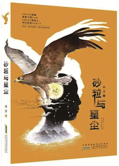 长篇小说《砂粒与星尘》的故事,发生在中国东北方的沙漠腹地,一个人烟寥寥、几乎成为“空巢”的村落乌粮。小说的几个主角,既有人物,也有动物。人物有年老的“鹰把式”砂爷,砂爷的亲生儿子、8年前驾鹰出走、从此杳无音信的少年砂粒,还有8年后从观星团中走散、迷失了方向而滞留在乌粮的观星少年星尘;动物里有一只海东青(虎子)、一只被遗弃的公鹅(公爵)、一条独狼(狼王)和它的狼群,还有一群羊。于是,人与动物、动物与动物,在乌粮这个人迹罕至、即将被沙子掩埋的荒村里,上演了一场残酷而持久的、惊心动魄的较量。生与死、恩与仇,正义与阴险、追寻与迷失,勇毅与怯弱、希望与绝望,还有新生与守旧、救赎与自救,都在一场场紧张的对峙与生死较量中,得以展开和呈现……