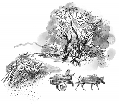 冬临门。泡上腊八蒜,做起萝卜灯。萝卜芽的花骨朵泛出淡黄色,盛开在岁朝的爆竹声里。将扁担探上房檐,掰下冰壶(也叫冰溜),嘎嘣嘎嘣嚼。《快意冰壶》里说:“冰壶晶光剔透,与孩子心地相映。”男生课间玩“撞拐”,冷天找乐。大青杨耐寒,叶子落得迟,叶梗柔韧,用来“赛老根儿”,是少年斗输赢的游戏。还有 “嗑房子”“吃面条”跟“搋子”,各有巧妙,多是村中女孩着迷的玩儿法。