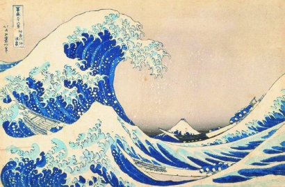 葛饰北斋《富岳三十六景》系列作品之《神奈川冲浪里》,其非凡的线描和构图使之成为日本浮世绘的标志。