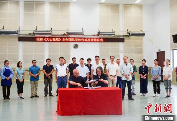 7月17日,话剧《大山壮歌》主创团队签约仪式及开排仪式在南宁市举行。 蒋园园 摄