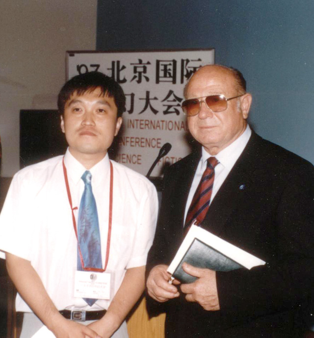 1997年吴岩与第一次太空行走的航天员列昂诺夫一起主持科幻会议