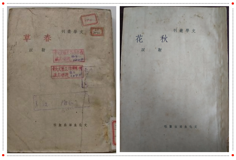 靳以的小说《秋花》和《春草》,是一对姊妹花。《秋花》列入巴金主编的“文学丛刊”第二集,《春草》列入第八集,分别于1936年8月和1946年4月,由文化生活出版社初版。这是两部连续性的中篇小说,《春草》是《秋花》的续集,小说中的人物是一致的,表达的主题也是一样的。