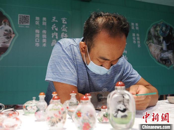 与张雪峰一样,来自吉林省梅河口市的王兴鹏也有着同样的期盼。作为市级非遗项目艺壶轩王氏内画的传承人,王兴鹏希望在非遗节上找到“耐得住寂寞”的年轻人学习内画。“许多人没有学艺的决心,三分钟热度一过,就不学了。”