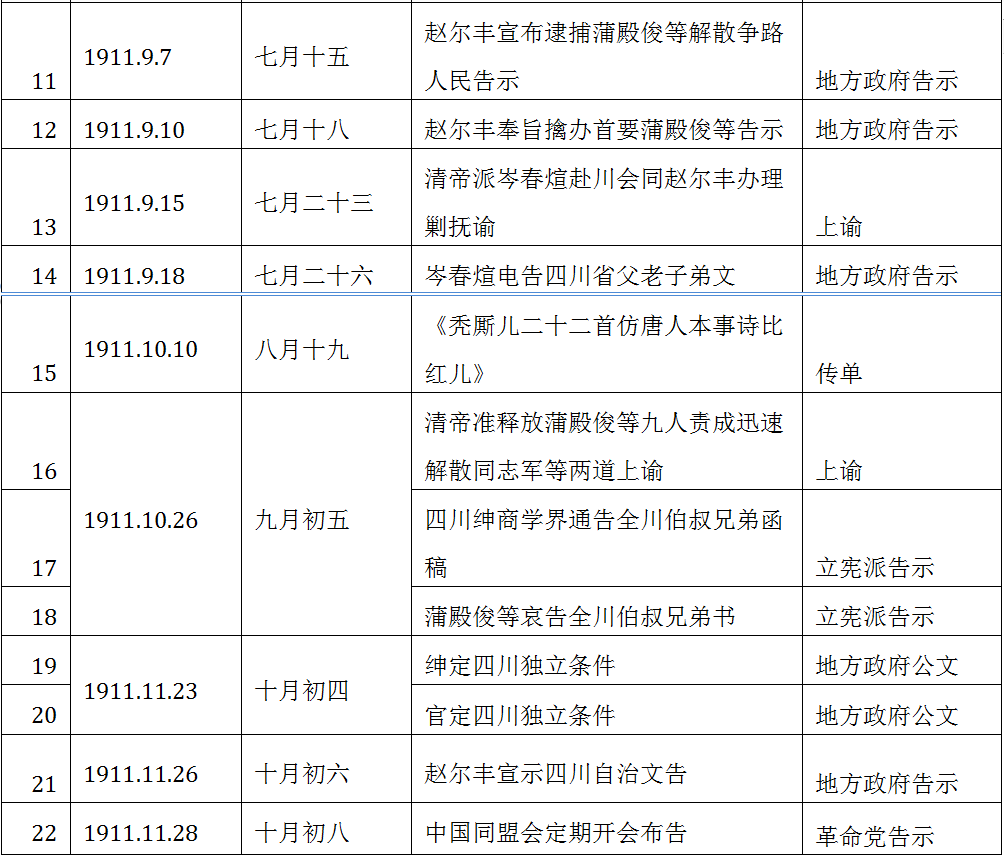 李劼人的《大波》是当时为数不多的在小说中郑重开列和铺排争路运动史料的长篇小说。统计后会发现,其所“引用”的与运动相关的文献一共22笔,绝大多数属全文“引用”,其中一部分第一手资料亦被史学界使用:[7]