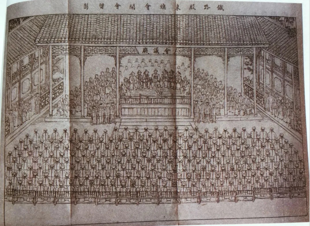 时人所绘川汉铁路公司股东大会图,诵清堂主人:《辛亥四川路事记略》,转引自《四川省图书馆馆藏四川保路运动史料书影汇编》,四川大学出版社,2014年。