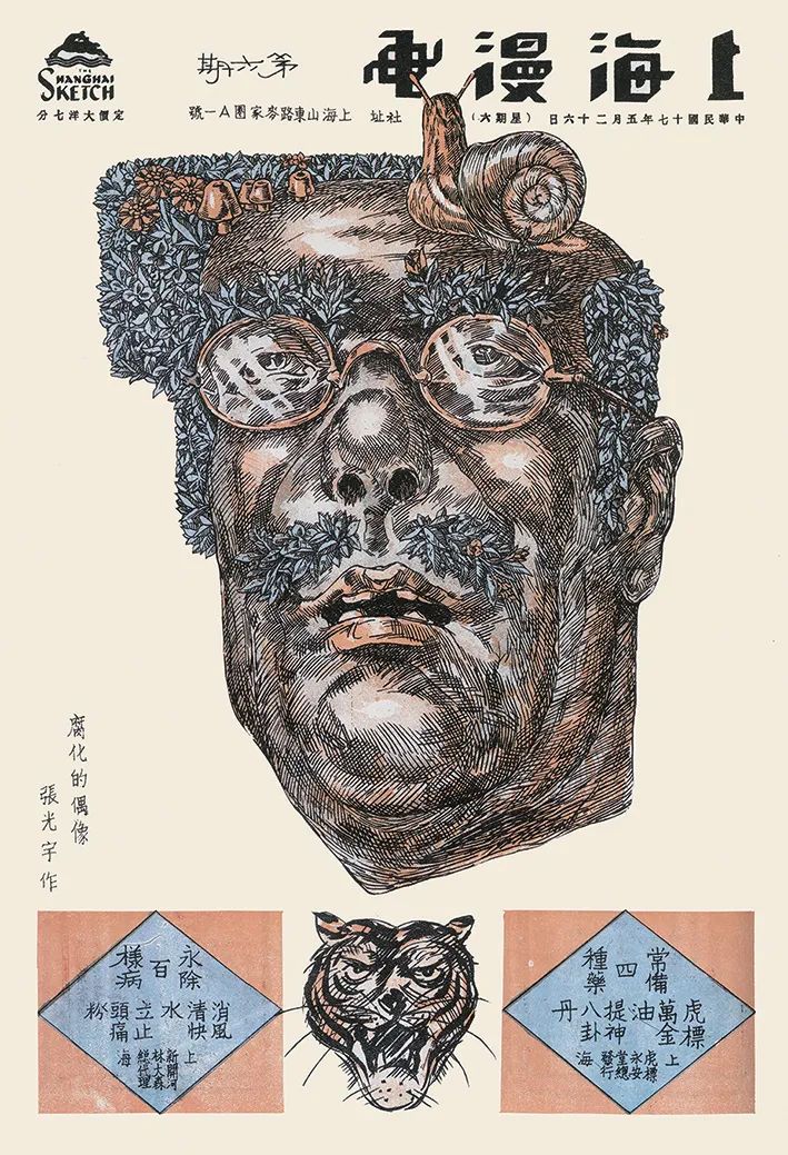 张光宇,原名张登瀛,出生于江苏无锡县中医世家。1914年到上海读书,在住处附近“新舞台”结识武生张德禄,从此常去那里画戏剧速写和脸谱。1916年小学毕业,从师“新舞台”的置景主任、画家张聿光(中国早年的新派画家、漫画家和美术学校创办人),学习绘制新式布景。1921年任南洋兄弟烟草公司广告部绘画员。1925年“五卅惨案”之后,创办《三日画报》,发表漫画。 1928年集资创办中国美术刊行社,并主编《上海漫画》(周刊),设计封面画、广告,发表漫画和摄影作品。