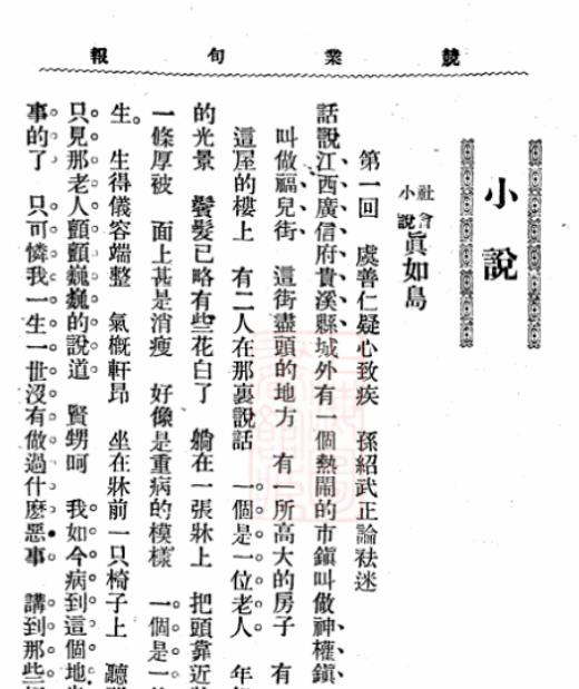 《真如岛》第一回首页(局部)
