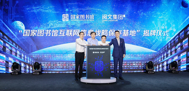会上,阅文集团挂牌成为国家图书馆第二家互联网信息战略保存基地,同时,来自阅文平台的百部网文佳作被典藏入馆。
