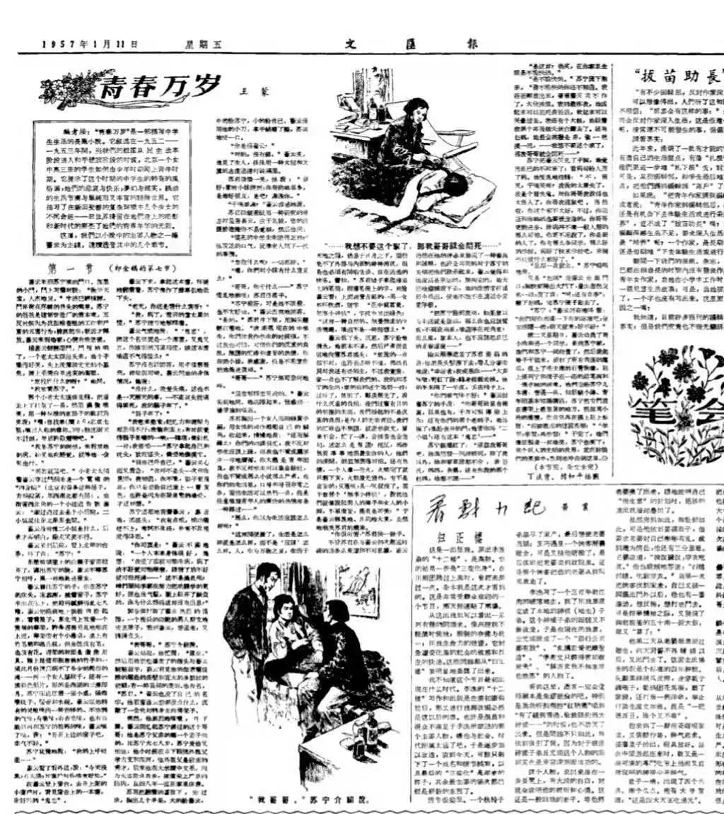 1957年1月11日《文汇报》连载《青春万岁》