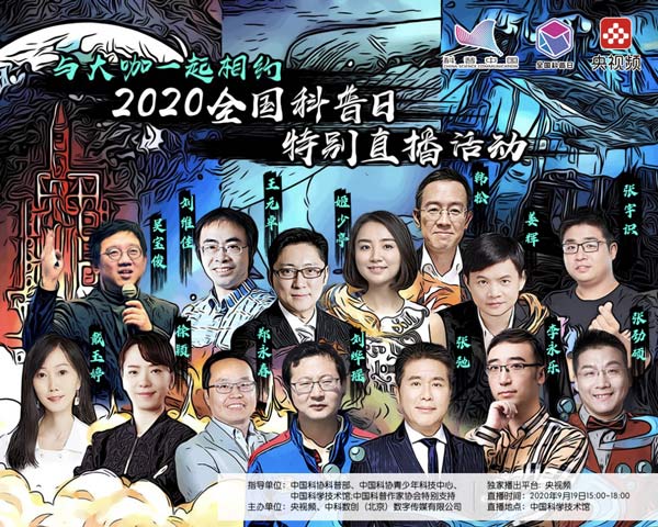 2020年9月19日,由中国科协科普部、中国科协青少年科技中心、中国科学技术馆、中国科普作家协会、中国科学院大学科协共同指导的“全国科普日”特别直播活动在京圆满举行。来自航空航天、海洋探测、科幻创作三个领域的14位重要嘉宾,围绕现代科技与人类未来展开了三场精彩连播。