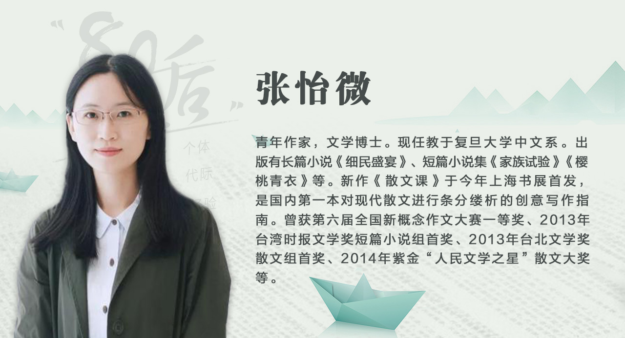 尽管张怡微自己并没有太强烈的“80后作家”的感受,但她的写作路径却很能代表一部分“80后作家”的成长路径:从新概念作文大赛一战成名,成为“青春写作”的代言人,到转战传统文学期刊,逐渐地褪去“青春写作”的风格与痕迹。