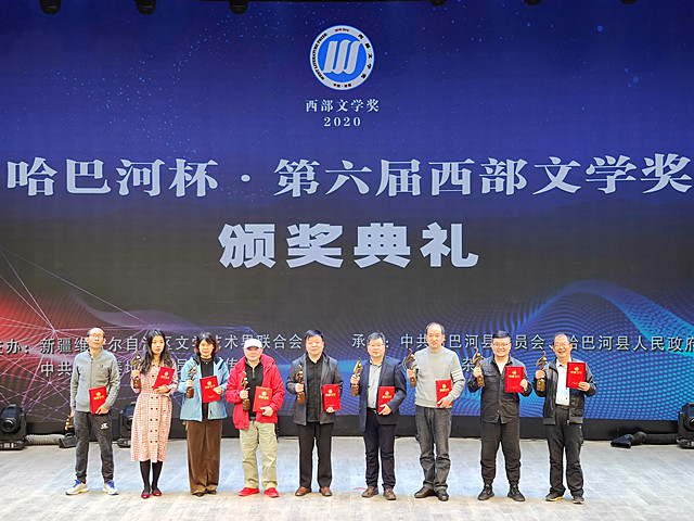 9月26日,由新疆文联、阿勒泰地委宣传部主办,哈巴河县委、县人民政府、《西部》杂志社承办的“哈巴河杯?第六届西部文学奖”颁奖仪式在景色怡人的新疆哈巴河县举行,共有9位小说家、诗人、散文家、批评家和翻译家摘得桂冠。