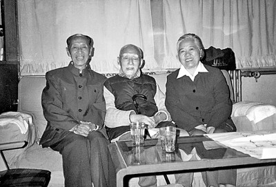 1987年9月30日,臧克家、郑曼夫妇拜望叶圣陶先生(中)。资料图片