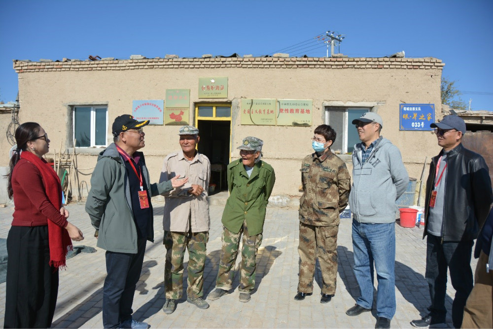 16日,采访团来到裕民县第九师161团魏德友居所,看望“时代楷模”、“最美奋斗者”护边员魏德友。魏德友自1964年响应中央号召来到新疆,就坚守在萨尔布拉克草原的边境线上,50多年来义务巡边20多万公里,是边境线上的活界碑。“我要努力,继续为祖国放牧巡逻”是他的铿锵之言。作家们参观了魏德友来疆初期居住的“地窝子”,与老人亲切交谈,详细了解其护边历史。山东作家高振感慨道,魏德友、刘景好夫妇用生命的芳华践行沂蒙精神,为守土护国、保卫边境做出了自己的贡献。