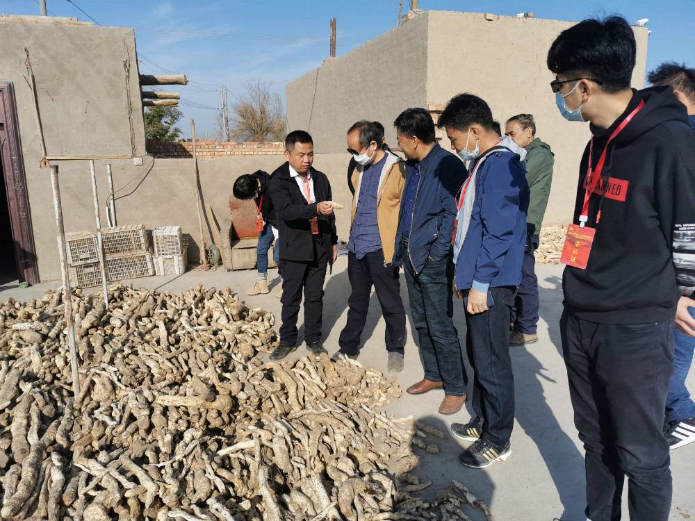 在吐鲁番市高昌区恰特喀勒乡阿依库勒村,采访团了解了当地致富带头人阿不力孜·司马义的故事。阿不力孜原本是棉花种植户,年收益一般。2013年起,他在各地学习大芸的种植技术,2015年,成功实现纯利润30多万元。他还带动其他村民一起种大芸,不仅免费教他们技术,还雇村里和周边村镇的村民到地里劳动,帮他们增加家庭收入。大芸种植不仅增加了农民收入,还改善了生态环境,在沙生植物梭梭根部接种大芸,在防风固沙改善生态环境的同时,极大地促进了林业增效、农民增收,将沙漠生态治理和沙产业有效结合起来。
