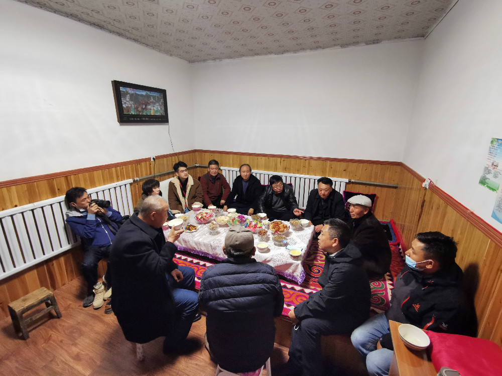 在哈萨克牧民家与牧民交流