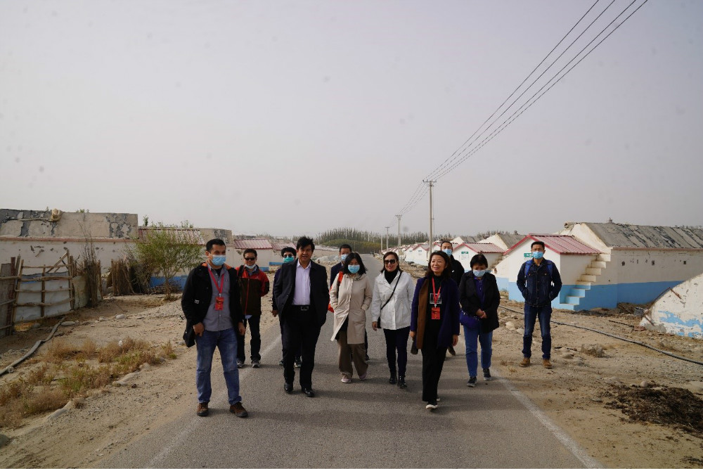 采访团在霍城县大西沟乡苜蓿台子村扶贫示范点参观