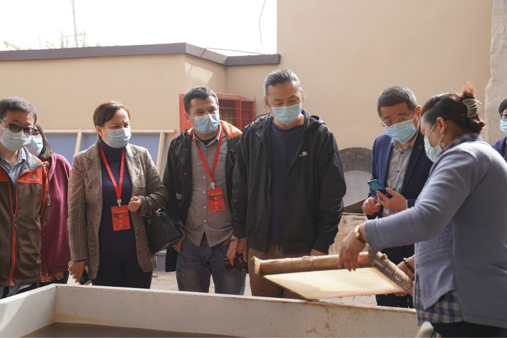 采访团在墨玉县了解桑皮纸的制作