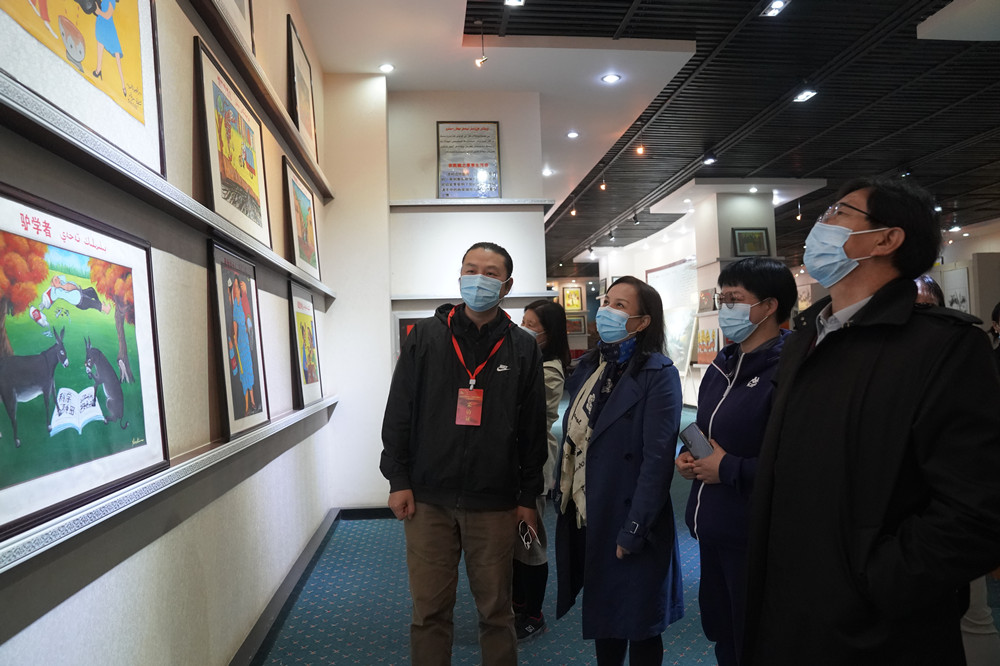 1963年至1978年,作家王蒙在新疆生活工作,其中有8年在伊宁市巴彦岱乡度过。他在此与伊犁各族群众同吃、同住、同劳动,跟着当地人学维吾尔族语,与各民族人民建立起深厚感情。采访团成员走访了伊宁市巴彦岱乡的王蒙书屋,其中展出的大量字画、照片和影像资料展示出王蒙当年的生活、工作和创作的场景,展现出他对伊犁深厚真挚的感情,也见证着他在加强民族沟通团结、促进民族文化交流方面的巨大贡献。