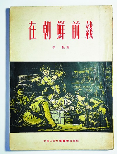 李蕤的通讯报告集《在朝鲜前线》,中南人民文学艺术出版社,1953年版,封面系古元木刻。