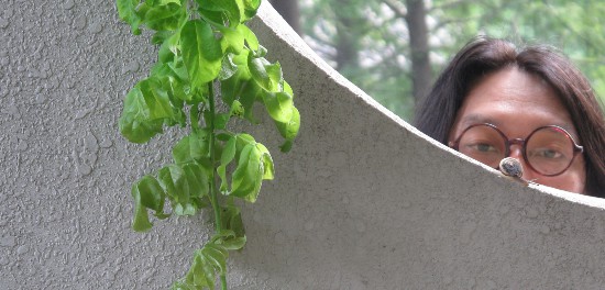 朱赢椿的工作室由一间废弃印刷厂房改造而成。因为是平房,北侧有一块狭小空地,繁花杂树在此自由生长,自己种的丝瓜和葫芦也能交错攀爬。