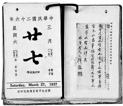 就此,1937年版《故宫日历》,遂成老版《故宫日历》的“绝版”。始于1931年面市,至1937年中止,历经上个世纪30年代最为波诡云谲的七年时光,老版《故宫日历》,终于不得不与国人依依惜别了。