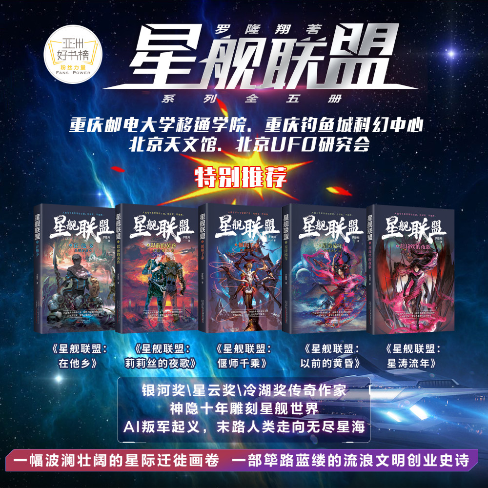 《星舰联盟》系列图书由获得银河奖、星云奖、冷湖奖的传奇作家罗隆翔所著。本系列书籍被重庆邮电大学移通学院,重庆钓鱼城科幻中心,北京天文馆,北京UFO研究会,中国科幻银河奖与全球华语科幻星云奖特别推荐。创作十年,终成为统一世界观的大的五本套系列故事。早在2012年网友就在对这个世界观的故事进行讨论,如今本系列的出版可谓万众期待。