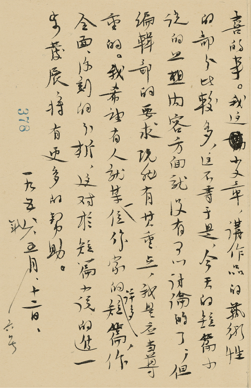 茅盾这封信,凤凰彩票这辈人也应该是非常熟悉的,只要涉及到当代文学研究,这封信是绕不过去的。一是这篇文章绕不过去,二是文章里面提到的那些作品,很多已经成为了当代文学的经典之作,也是绕不过去的。《谈最近的短篇小说》这篇文章完稿日期是1958年5月12日,是应《人民文学》编辑部的邀请写的,茅盾也写过很多短篇小说,他也是很乐意评论的。 凤凰彩票对作家进行研究,非常重要的一点,就是他的文本研究,特别是在今天来讲是越来越重视了。近现代的版本,我个人认为远远比古籍复杂,这里面的版本变化各种各样,有作者自己的反复修改,像老舍的《骆驼祥子》等不知道出过多少版本,也有当时的情况下比如说被镇压的,被销毁的,被查禁的,还有政治形势下需要进行某种修改,所以非常复杂,出现了很多版本。我也希望对以后文学的研究,加强对文本的研究。