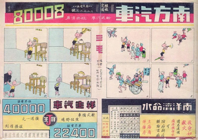 目前能找到的最早的三毛漫画,刊登在1935年7月28日的《晨报》副刊《图画晨报》上。