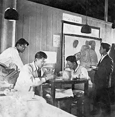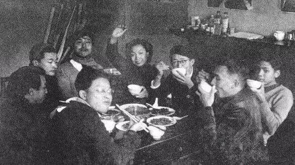 救亡漫画宣传队在创作 右起:张仃、胡考、张乐平、陆志庠