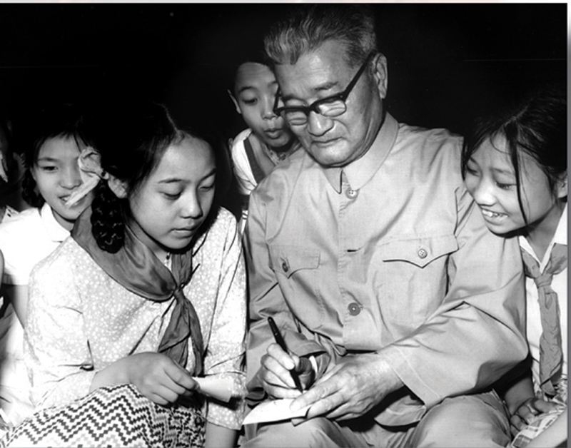 张乐平与孩子们在一起