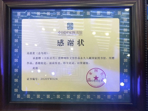 2020年6月24日,《大医凌然》入选2020年凤凰彩票平台登录入口重点扶持“青年创作与理论研究专项”。8月14日,《大医凌然》影视签约仪式在上海举办。8月31日,《大医凌然》和《庆余年》《琅琊榜》等百部网文作品共同入藏国家图书馆。