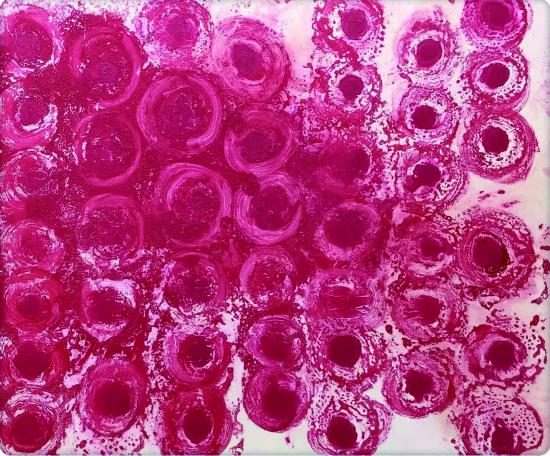 毫无疑问,贺贺的抽象画,是她与自己的一种心灵对话。这就像女人喜欢照镜子,贺贺的抽象画,实际上也是一种自我镜像,其中所映照出来的,正是她内心的伤感、惆怅,以及反抗与挣扎。我由此看到一位画家跌宕的内心,实际上跟所有女性一样,都隐藏着千千心结与多愁善感。
