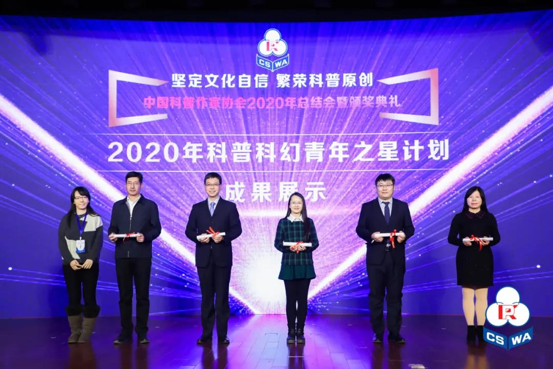 会议现场还展示了中国优秀科普期刊目录(2020年)、2020年科普科幻青年之星计划成果,并为优秀成果颁发证书。大会最后,青年嘉宾子琳、厉海川、刘海波、徐海、鞠强以“我与科普科幻”为主题发表演讲,分享青年一代在科普科幻创作过程中的经验和体会。