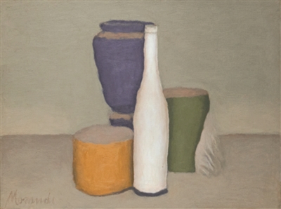 19世纪后印象派泰斗,被公认为“现代绘画之父”的塞尚便深受夏尔丹的影响,而前者则是莫兰迪最为推崇的艺术家之一。塞尚曾说“通过圆柱体、球面和圆锥体来处理自然”,这句话被他充分应用到其静物及风景画作品中。反观莫兰迪的静物画,你不仅能从画中找到塞尚的影响、从构图中觅得立体主义的痕迹、从静物瓶花中分辨出雷诺阿晚年花卉的色调,更能隐约洞察到夏尔丹所赋予静物的有尊严的生命感。