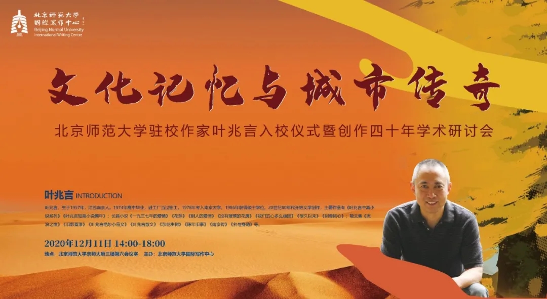 近日,作家叶兆言受聘成为北京师范大学国际写作中心驻校作家。在入校仪式暨创作四十年学术研讨会上,莫言、阎晶明、余华、苏童、欧阳江河、西川、白烨、陈晓明、王彬彬、金宁、施战军、徐可、李洱、贾梦玮、王春林、李遇春、顾广梅、康震、张清华、陈晖、张莉、翟文铖、张晓琴等作家学者以“文化记忆与城市传奇”为核心,探讨了叶兆言四十年来的文学创作。