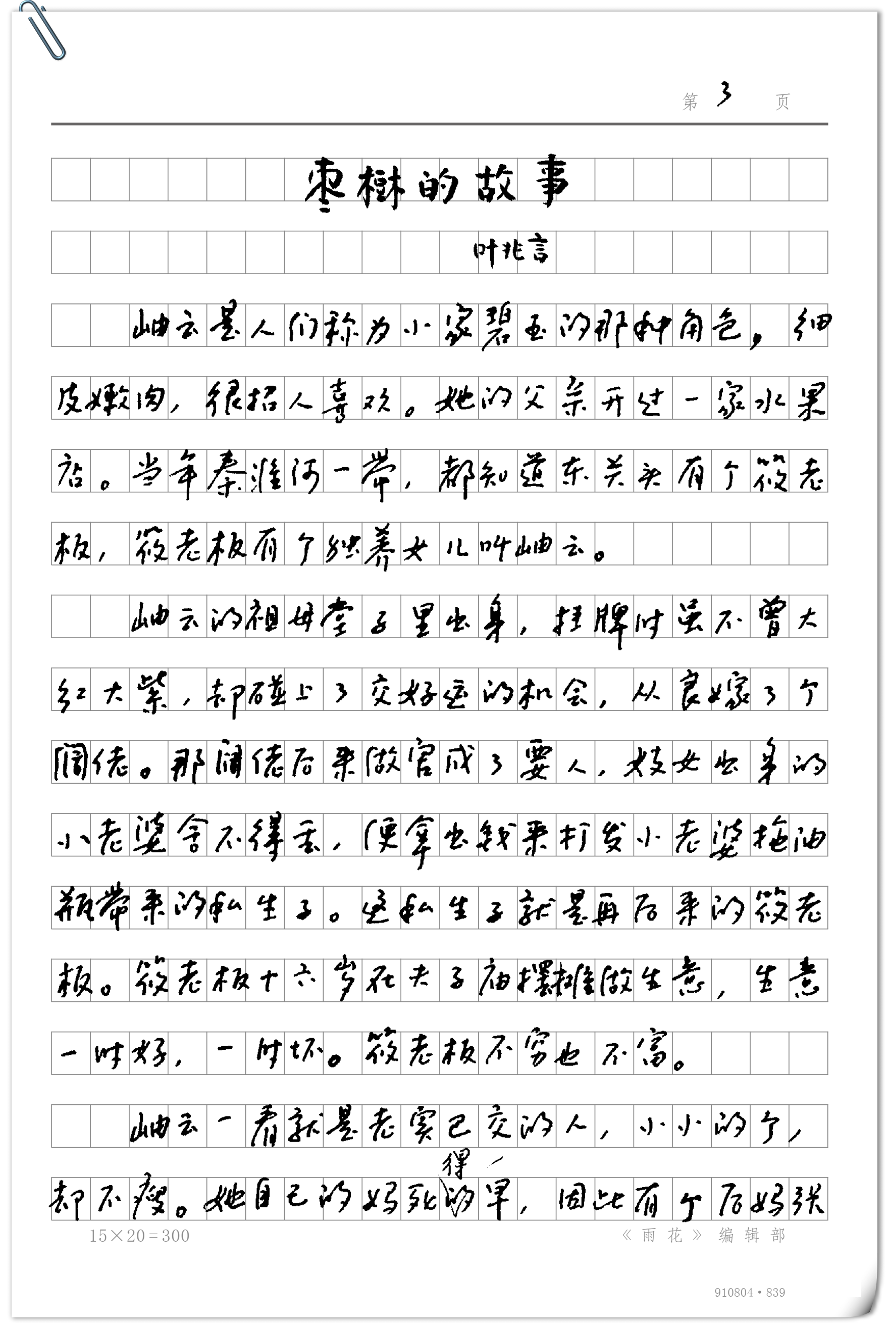 《枣树的故事》发表于《收获》1988年第2期,《作品》杂志2018年第10期“手稿”栏目刊载了小说手稿