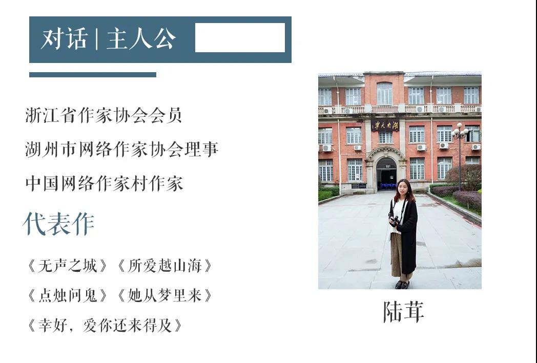 陆茸:初中的时候迷上看小说,但是家人和老师都管的严,后来就干脆自己写故事给自己看。笔名是用了我妈妈的姓,随便搭了个字,后来发现撞名鹿茸,因此还有了个外号叫“药材”。