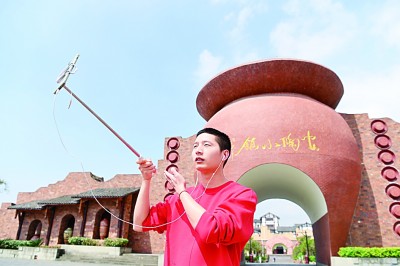游客在重庆安陶小镇通过手机“云直播”。新华社记者 唐奕摄