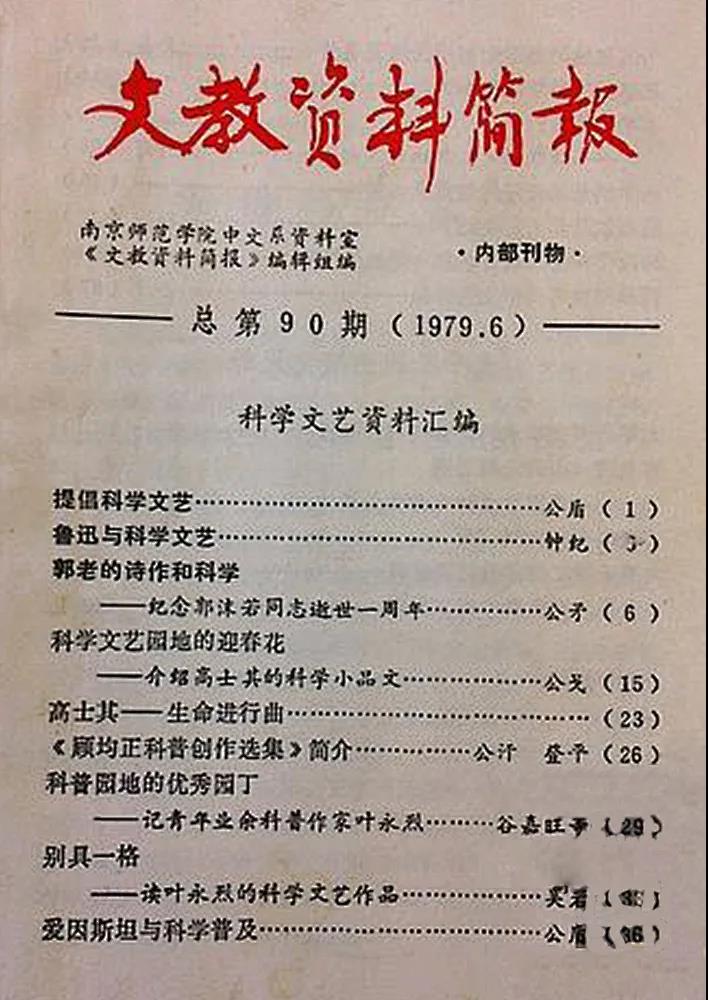 郑公盾人特别胖。我一定是在哈尔滨会议上跟他开始的交往,我只记得他当时就说,凤凰彩票住得很近,“你找一天到我家,我那里有一本书里面收录了我的文章,也收录了你的文章,我正好有两本”。我那个时候家住在北京市东城区灯市口同福夹道四号空政文工团的院子里,而他住在史家胡同,跟我只有一个丁字路口的距离。我如期赴约到他家,他从书架上取到一本由南京师范学院中文系资料室编辑的《科学文艺资料汇编》。这其中,他的文章《提倡科学文艺》是全集的首篇。此外还有《爱因斯坦与科学普及》《为凡尔纳的科学幻想小说恢复名誉》《法拉第和他的科普名作〈蜡烛的故事〉》,署名公盾。更有署名公矛的《郭老的诗作和科学——纪念郭沫若同志逝世一周年》、公戈的《科学文艺园地的迎春花——介绍高士其的科学小品文》,以及署名公汗的两篇作品。我觉得所有这些其实都是他写的。在那个年代里,由于作者极端短缺,许多报刊就会集中瞄准一个作者写许多文章。但在发表的时候,由于处于同一个版面或一期杂志,一个人的名字不能出现多次,因此换名字是常事。叶永烈老师常常就在《文汇报》科技版上占据整个版面,但除了一个文章署名叶永烈之外,其他的文章都会用阿烈、阿艇、叶舟、叶丹作为作者名。后面两个名字其实是他儿子的名字。当然,他儿子上中学后,也开始了科普创作,还出版过专门的书。这些都是后话。郑公盾给我的选集中,有我《别具一格——读叶永烈的科学文艺作品》一文。