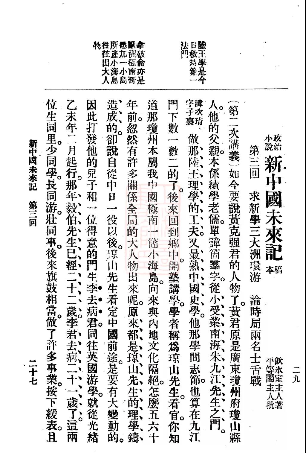 梁启超《新中国未来记》连载于《新小说》