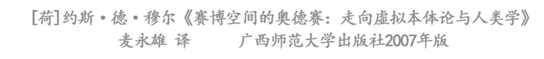 13、[荷]约斯·德·穆尔:《赛博空间的奥德赛:走向虚拟本体论与人类学》,麦永雄译,广西师范大学出版社2007年版,第100页。着重号为原文所有。