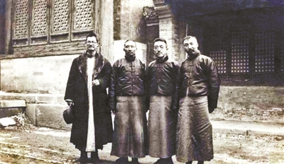 1920年3月,蒋梦麟、蔡元培、胡适、李大钊(左起)合影于北京西山卧佛寺