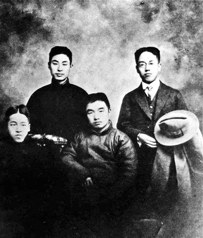 1921年12月31日于杭州。左起:许若昂(宝驹)、叶圣陶、朱自清、俞平伯