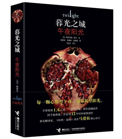 斯蒂芬妮·梅尔所著的“暮光之城”系列新作《午夜阳光》将由接力出版社出版,预计于2021年4月在中国上市。梅尔上一次出现在中国读者视线中可追溯到2009-2012年。接力出版社在这几年里陆续引进出版了“暮光之城”系列的《暮色》《新月》《月食》《破晓》全四册。
