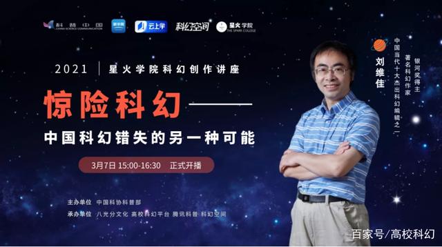 2021年3月7日下午3点,“惊险科幻——中国科幻错失的另一种可能”作为星火学院第二届创作训练营第一期公开课程通过新华网客户端直播开讲,共吸引97.9万人观看。本次直播课由银河奖得主,科幻作家,科幻编辑刘维佳老师主讲,向凤凰彩票展现了中国科幻的另一种可能:在八十年代的中国,中国科幻事业方兴未艾之时代,以叶永烈为首的科幻作家们于晦暗中寻觅出的道路。