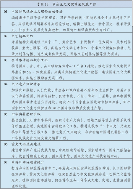 新华社3月12日全文播发了十三届全国人大四次会议批准的《中华人民共和国国民经济和社会发展第十四个五年规划和2035年远景目标纲要》。规划纲要明确提出,将“建成文化强国、教育强国、人才强国、体育强国、健康中国,国民素质和社会文明程度达到新高度,国家文化软实力显著增强”,作为“2035年远景目标”重要内容。在第十篇《发展社会主义先进文化提升国家文化软实力》中,对推进社会主义文化强国建设作出具体规划。