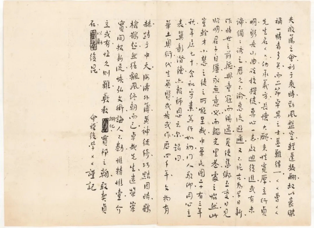 从形式上来说,碑文是书信的附件;从内容上来说,书信实际上是碑文的附带说明。《教泽碑文》原稿无标题,未用现代标点符号,仅以点号句读。全文如下: