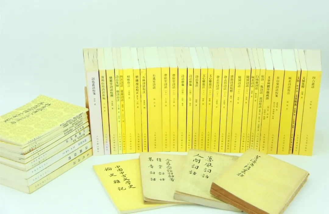 “中国古典文学理论批评专著选辑”最初由古典文论研究专家郭绍虞、罗根泽主编,涵盖了诸如《文心雕龙》《诗品》《诗话总龟》《苕溪渔隐丛话》《沧浪诗话》《随园诗话》《人间词话》等重要的古代文论作品。由于这套丛书的封面设计以黄色为底色,故又被称为“黄皮书”,在学术界有着深远的影响。1958年,范文澜先生《文心雕龙注》率先出版,此后《诗品注》《沧浪诗话校释》《人间词话》等陆续推出。1966年以前,这套丛书中的论著多为白文校点本,1976年以后,改为以笺注为主,直到现在,仍在吸收新作加入,累计出版50余种。丛书不断增加,在2010年之后,重新整合目录,第一辑十五种,第二辑十八种,具体如下: